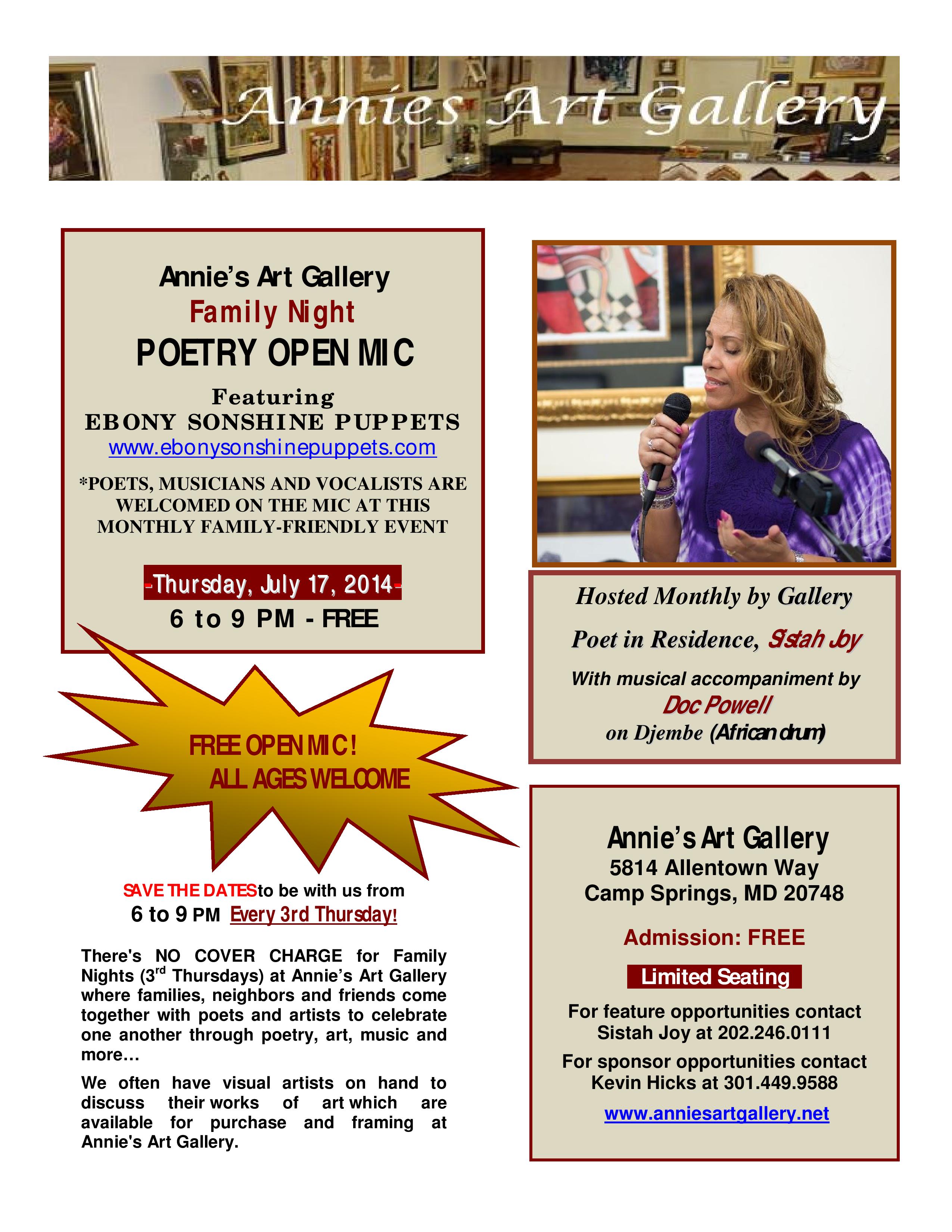 Join Annie’s Art Gallery for our July Family Night
