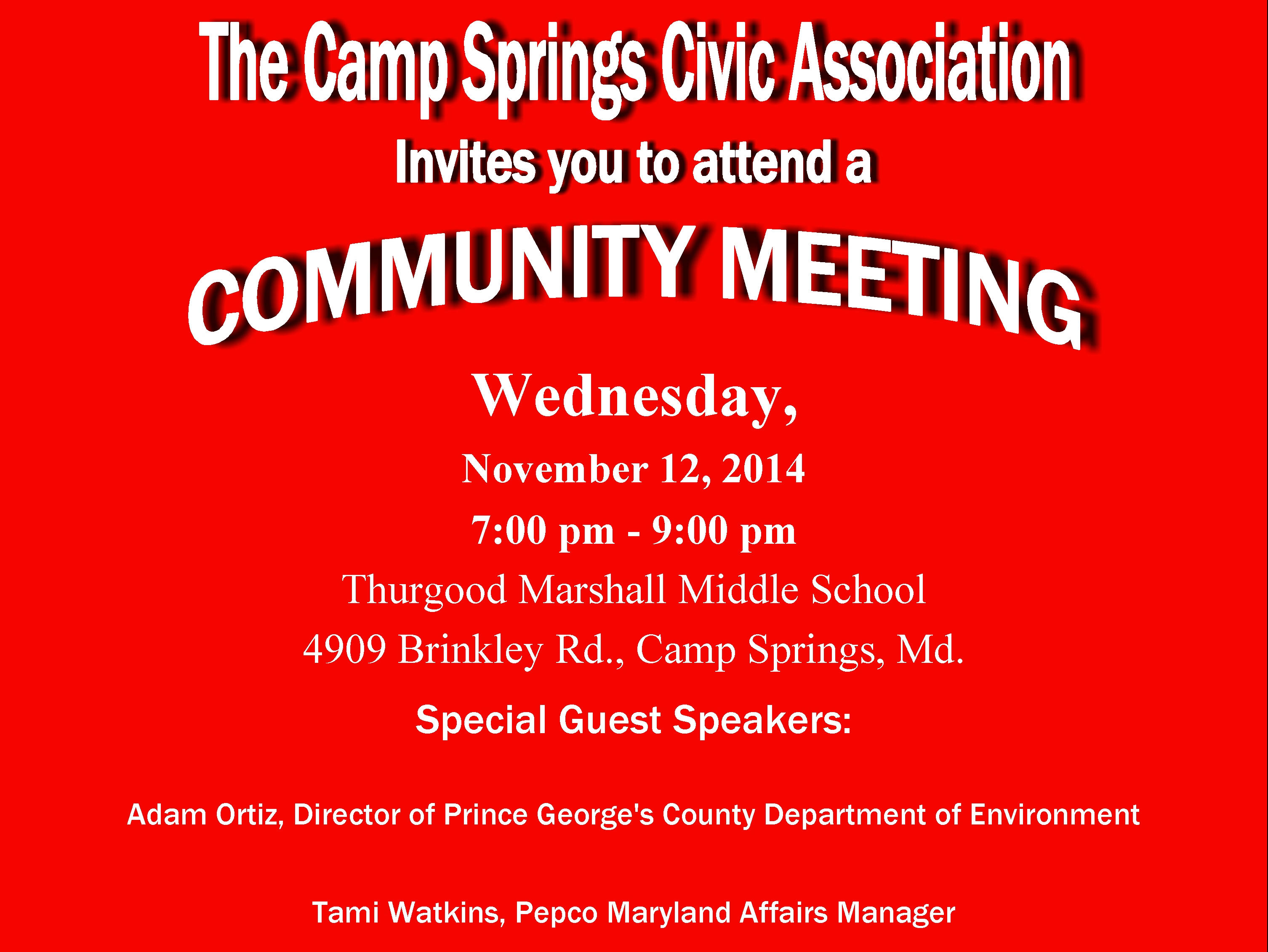 Tonight!!! You Are Invited To Attend The Camp Springs Community Meeting