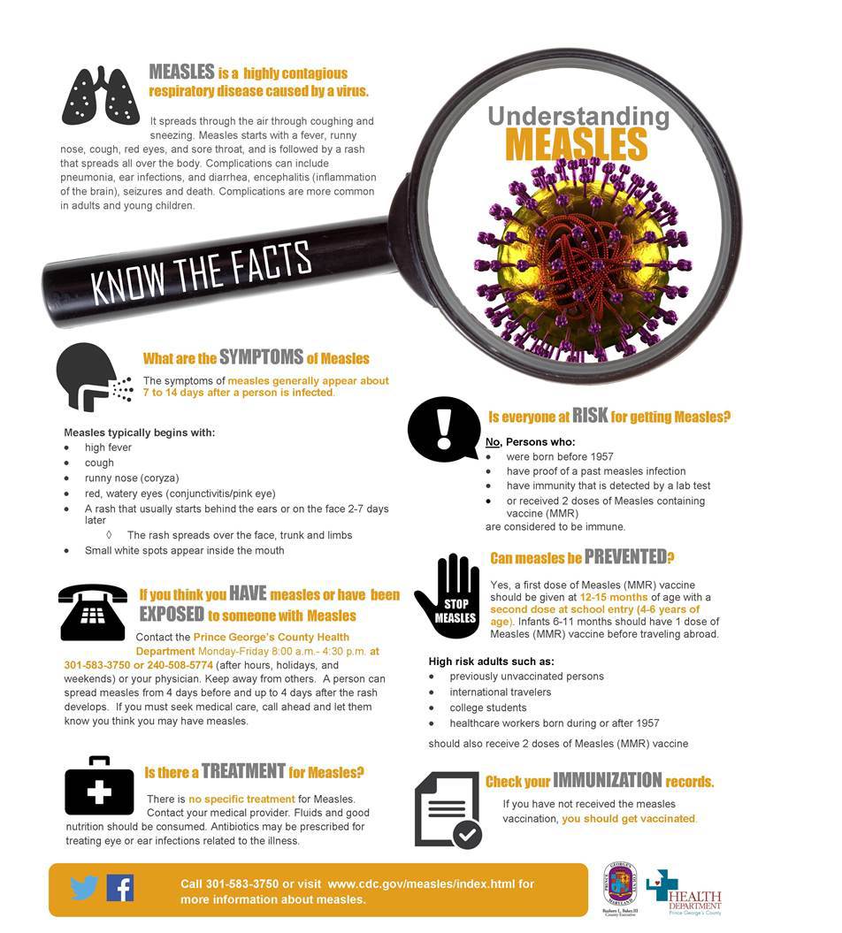 As you are aware, there has been a significant increase of a highly contagious respiratory disease known as measles. Below is a Fact Sheet designed to help you understand what Measles is and how to prevent the disease. For more information, please contact the Centers for Disease Control and Prevention at the number listed on the Fact Sheet below and attached.