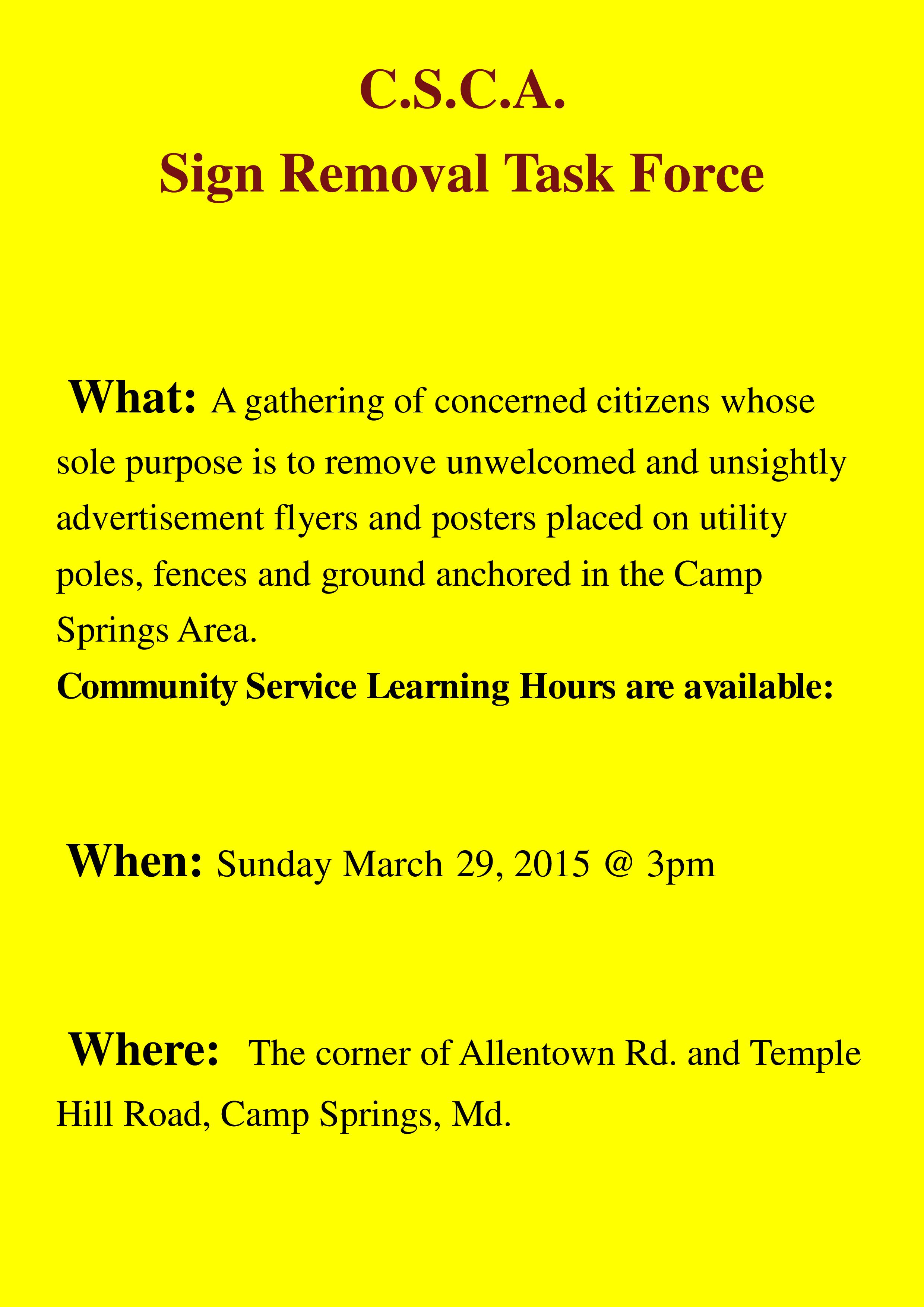 C.S.C.A. Sign Removal Task Force: Keeping Our Community Clean