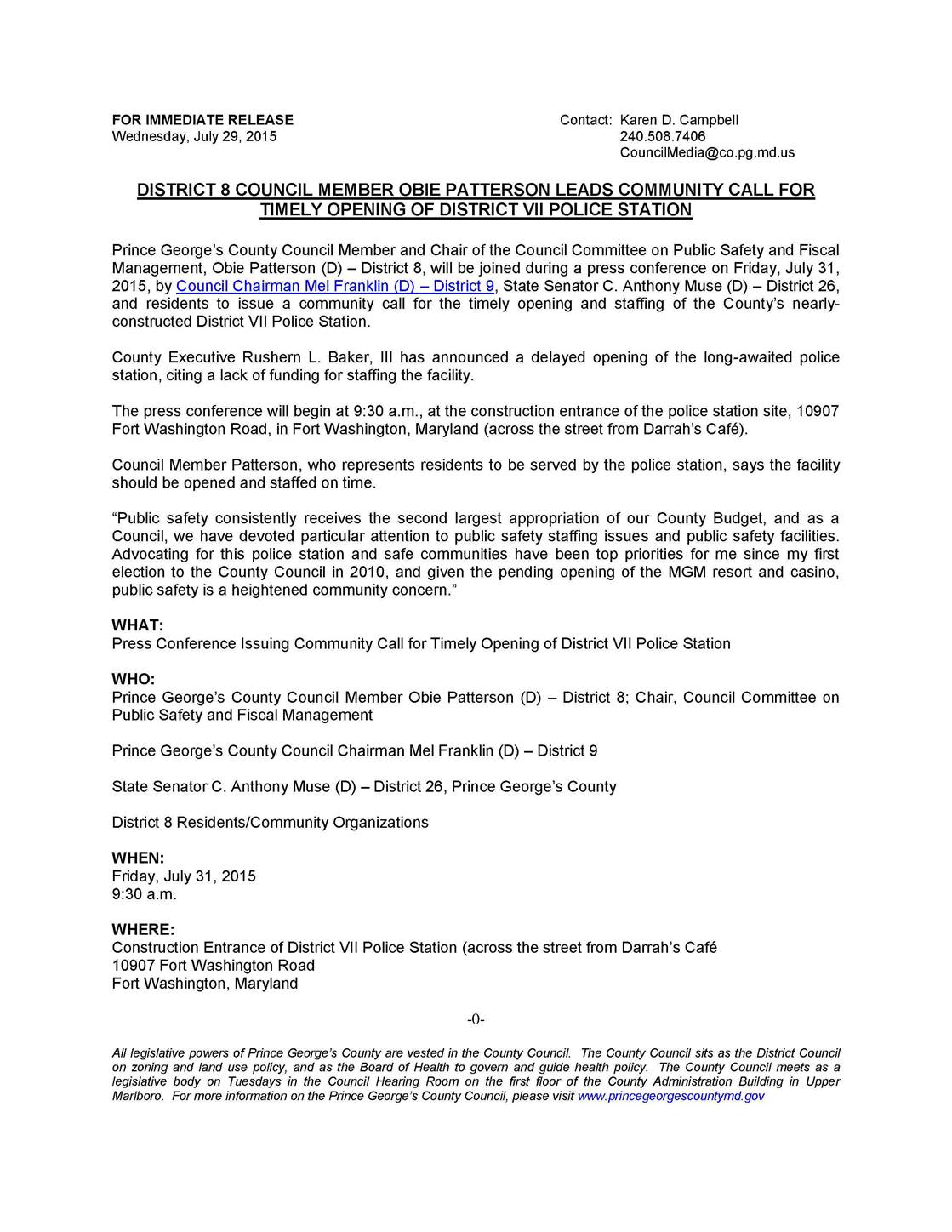 Press Conference Fighting for District VII Police Station in Fort Washington @ObiePatterson