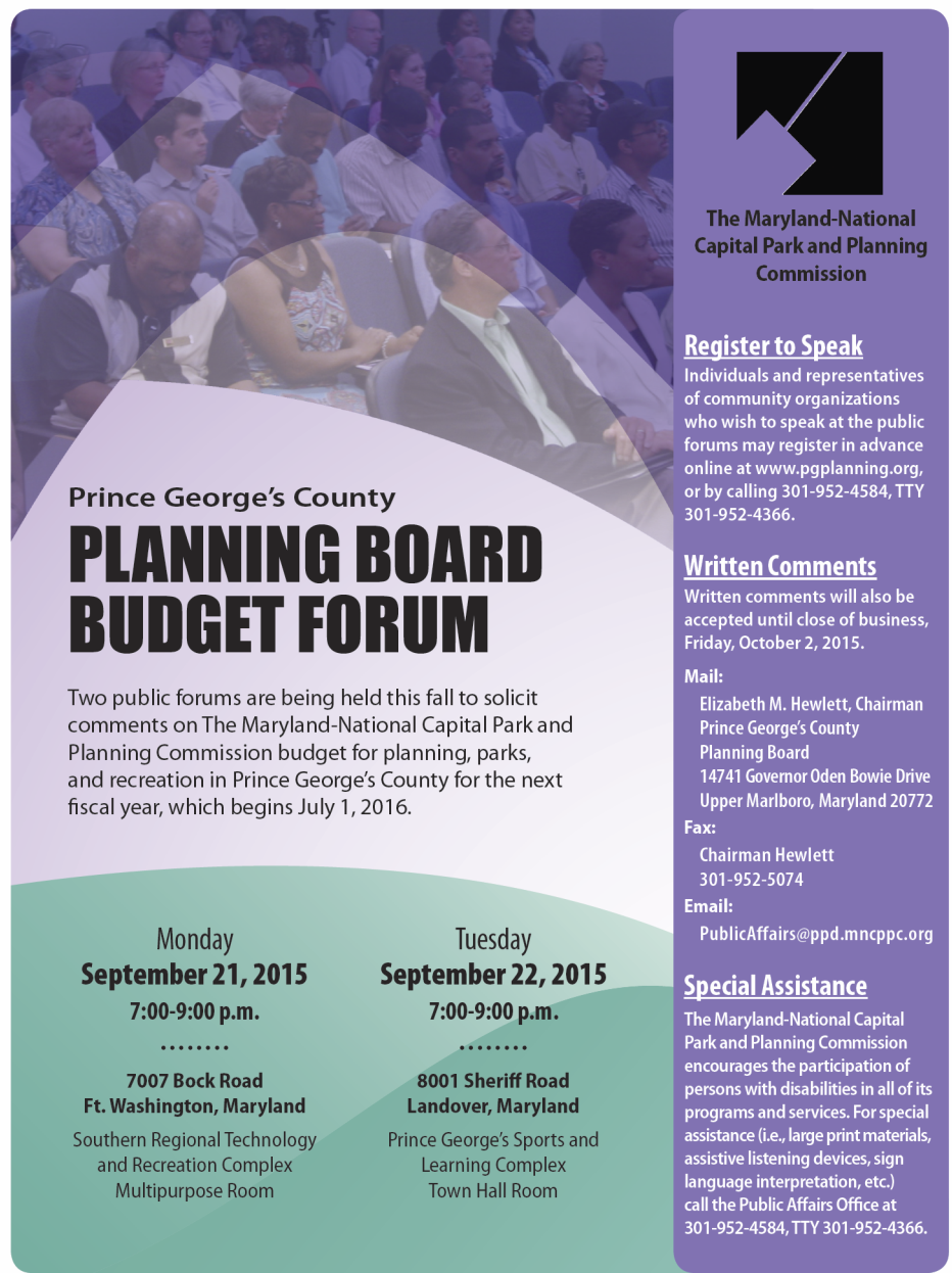 Prince George’s County Planning Board to Hold Budget Forums This Month