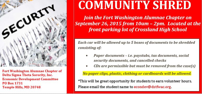 Ft. Washington Alumnae Chapter of Delta Sigma Theta Sorority, Inc Community Shred