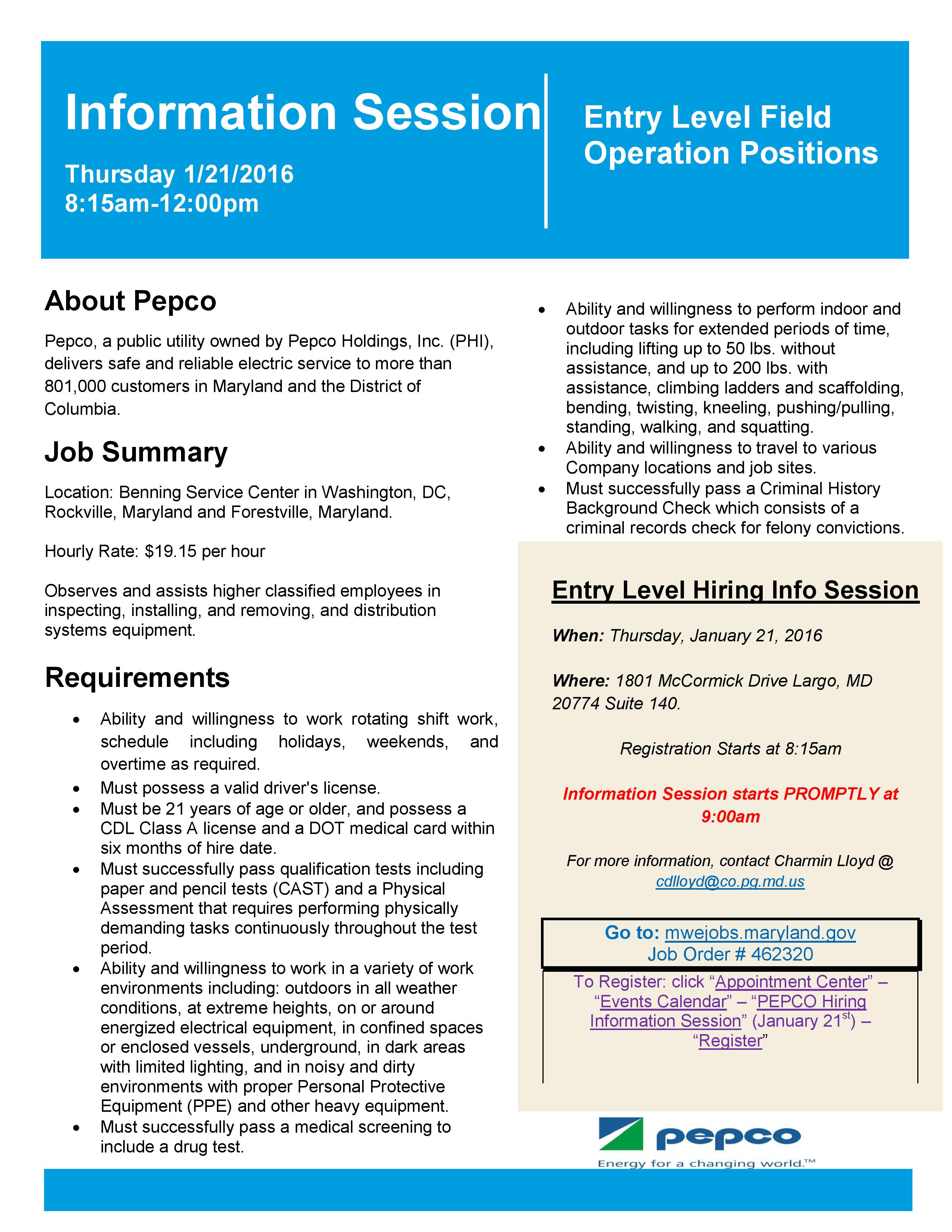Pepco Entry Level Hiring Information Session