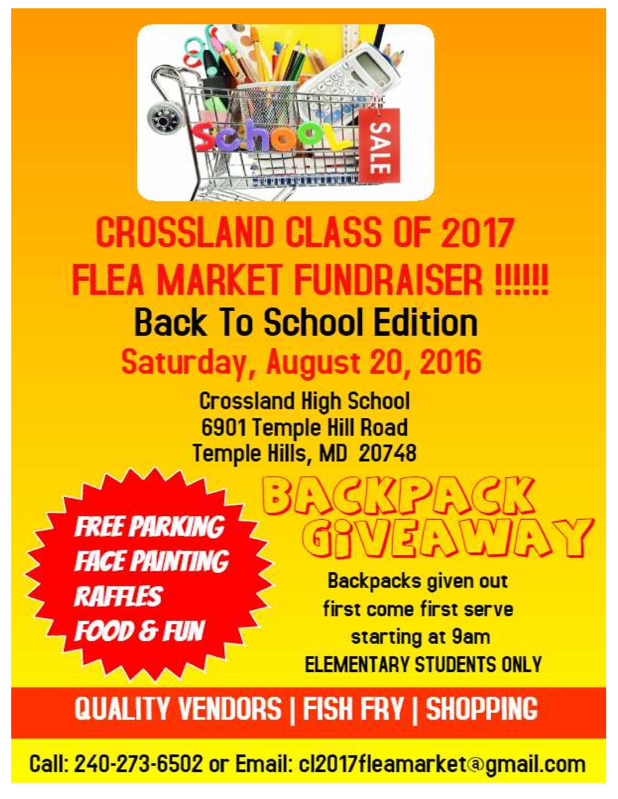 Crossland HS Class of 2017 Flea Market and Backpack Giveaway