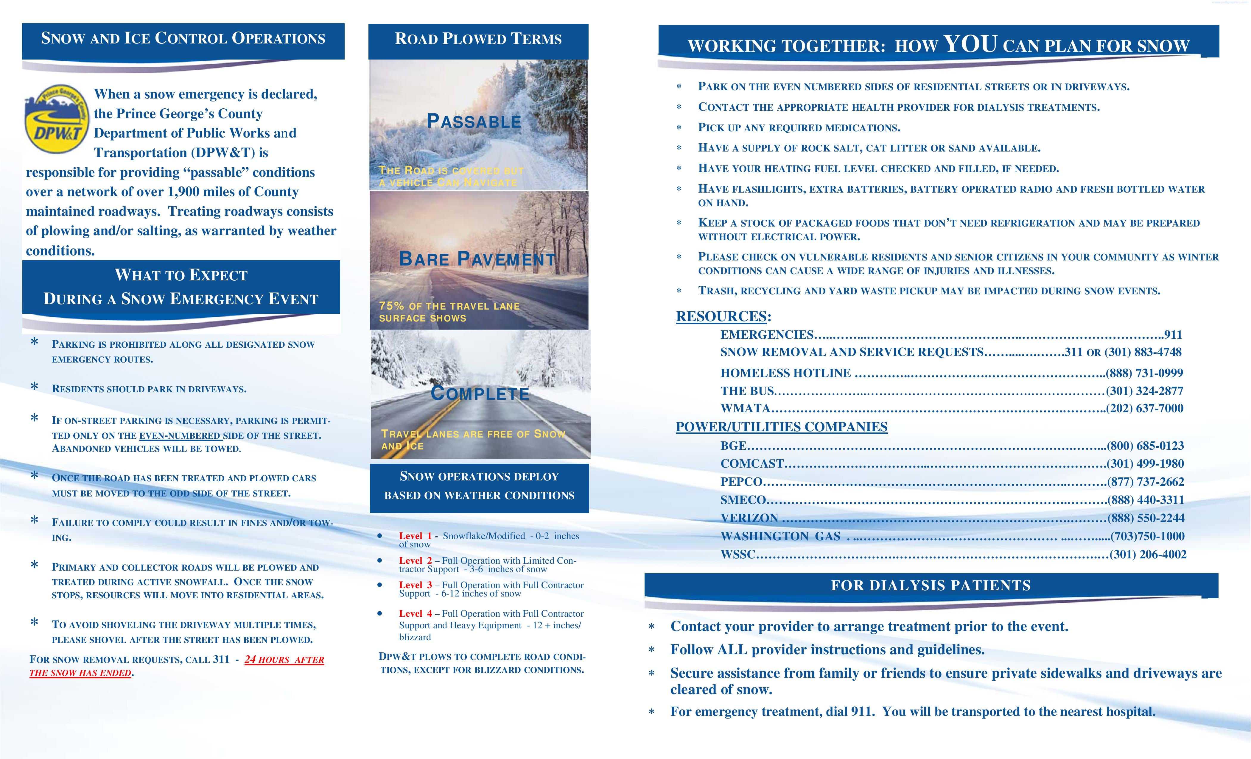 DPW&T Snow & Ice Control Quick Ref. Guide