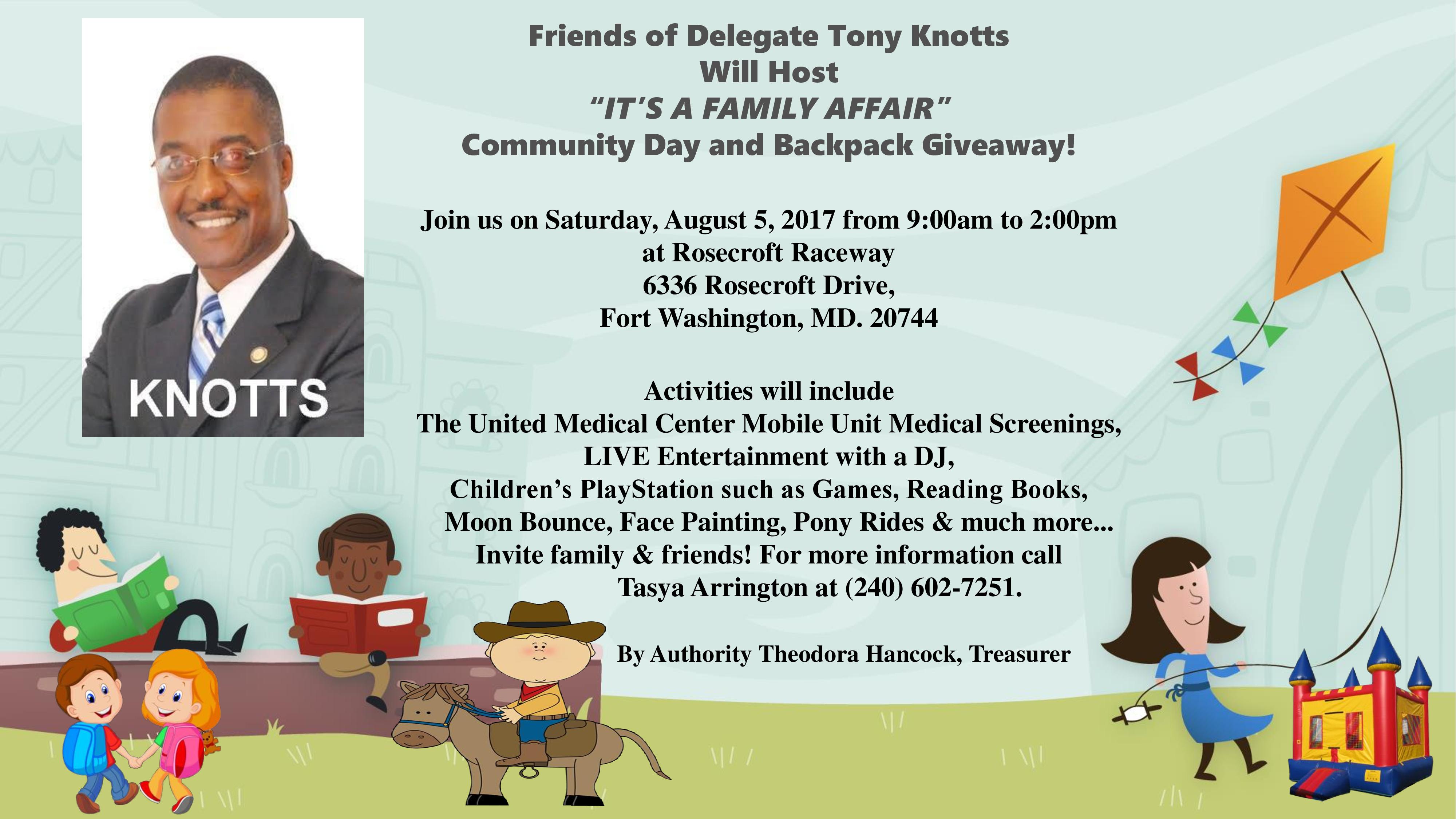 Tony Knotts Will Host “It’s A Family Affair” Community Day and Backpack Giveaway
