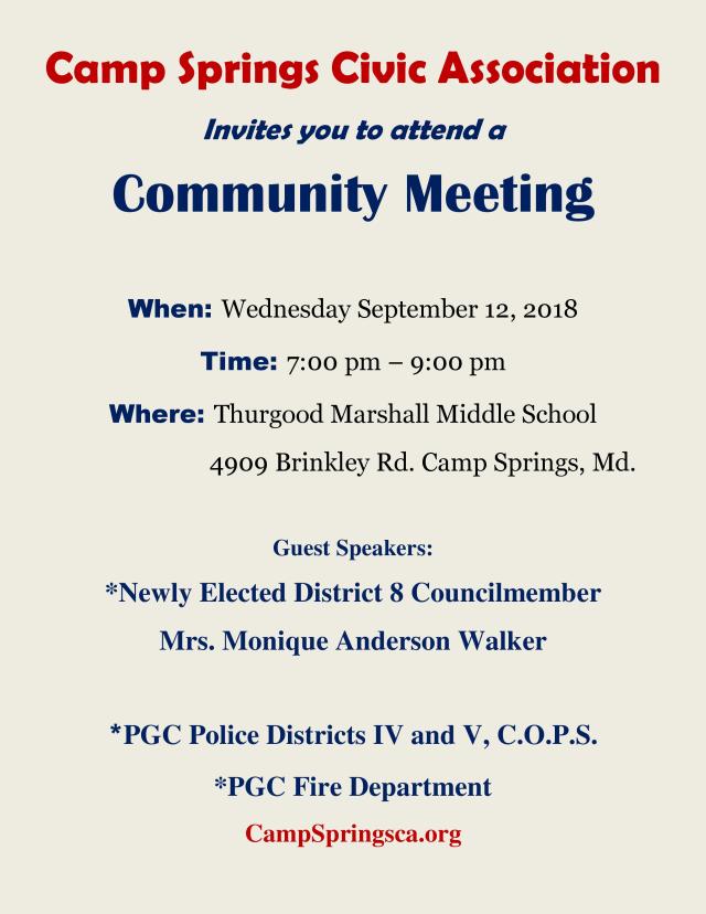 Posted on August 15, 2018 by Camp Springs Civic Association