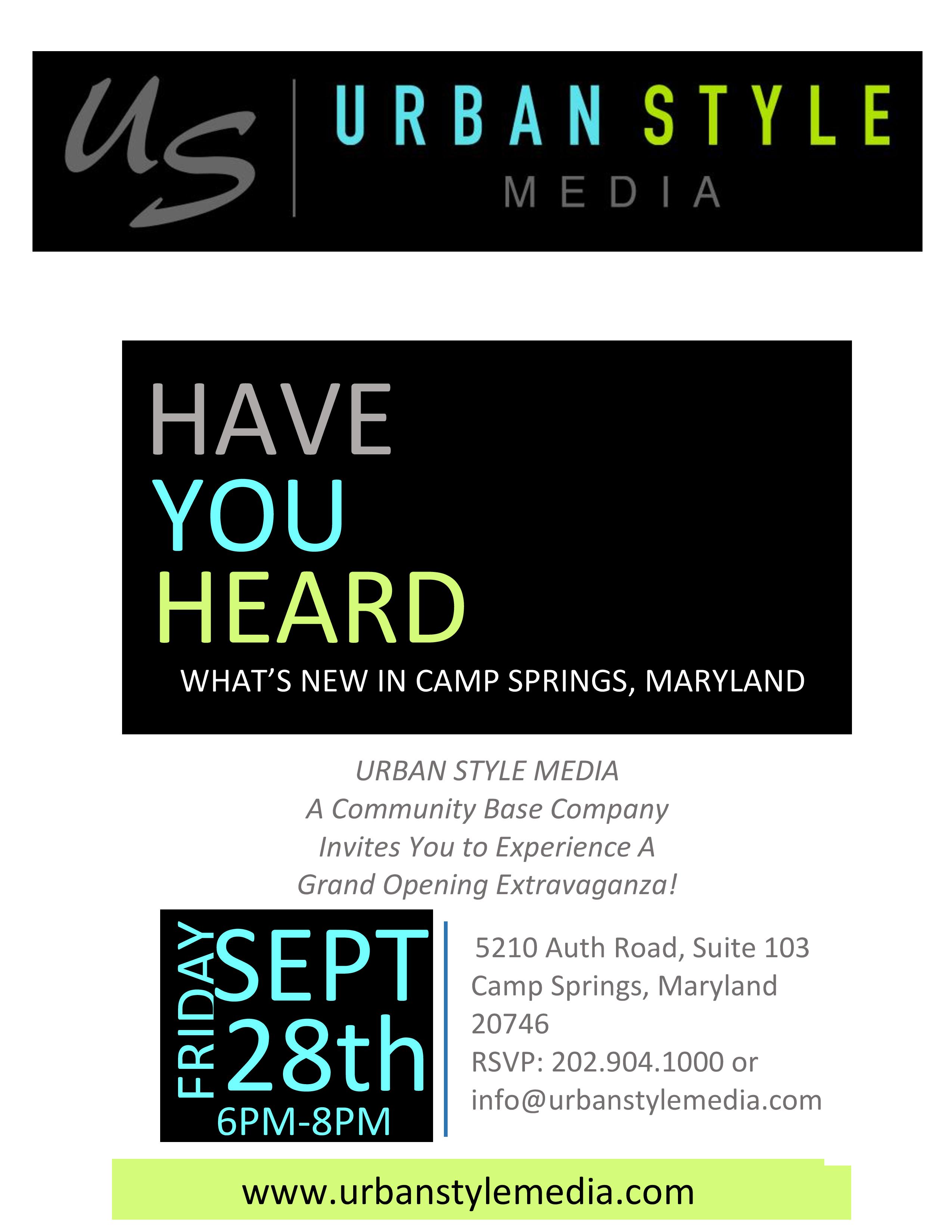 Urban Style Media Coming to Camp Springs! Join us Tonight
