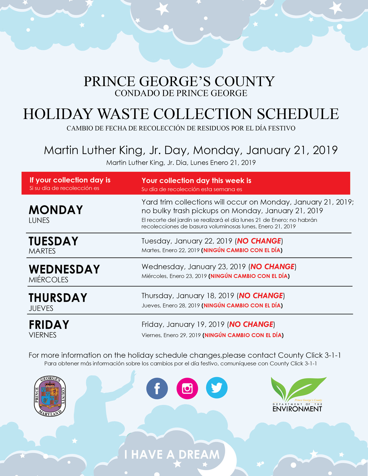 Recycling and Trash Holiday Collection Schedule for Martin Luther King, Jr. Day