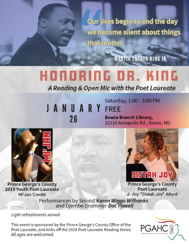 Honoring Dr. King – A Reading and Open Mic with the Poet Laureate 1/26