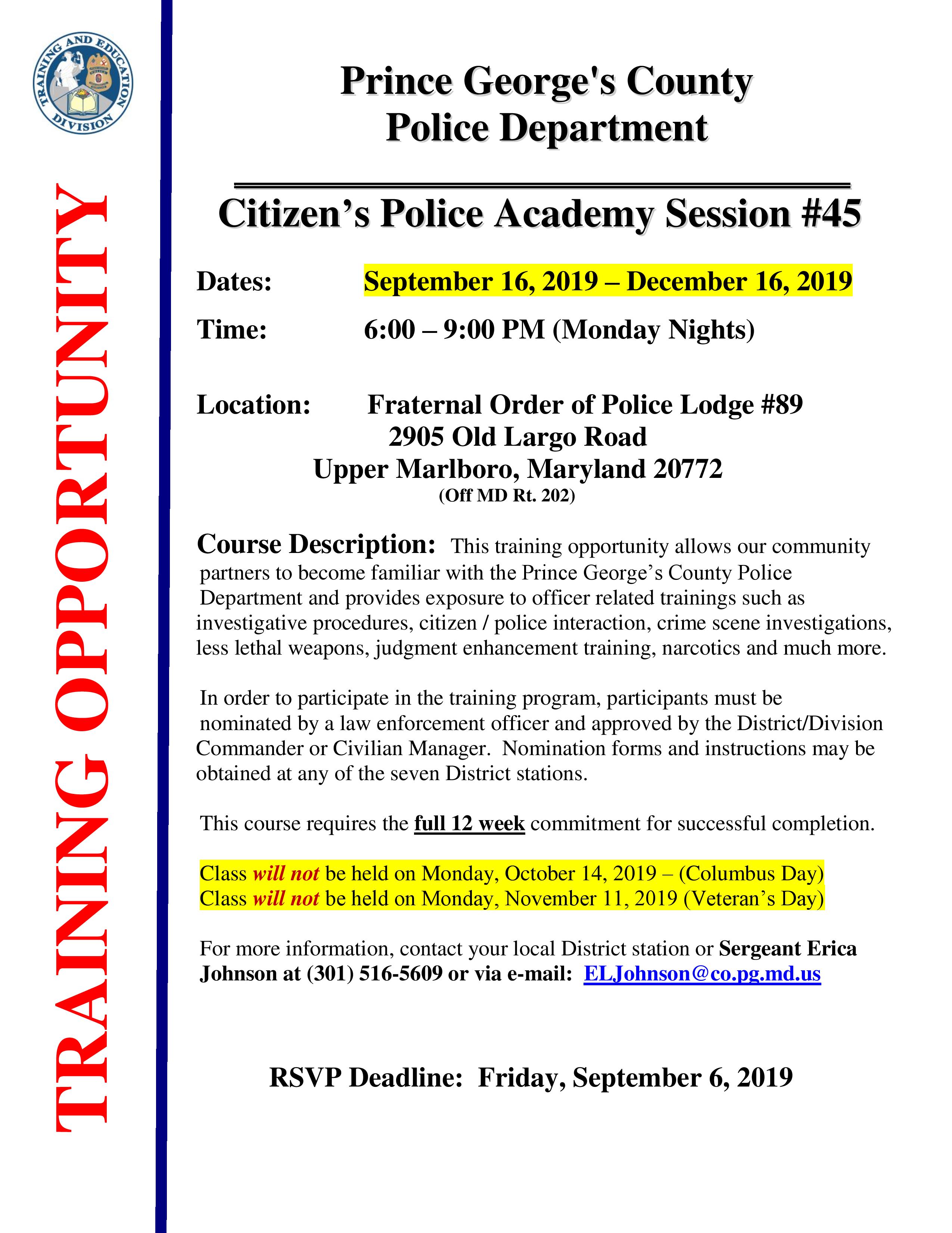 Citizen’s Police Academy Registration is Open for the Fall Session