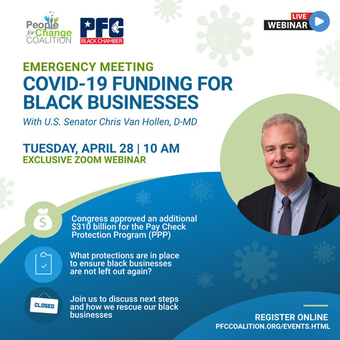 Join us for an emergency online meeting with Senator Chris Van Hollen Tues April 28, 2020 from 10:00am – 10:45am to discuss next steps and how we rescue our black businesses.