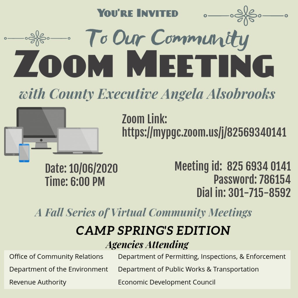 Camp Springs Community Meeting with County Executive Angela Alsobrooks 10-06-2020