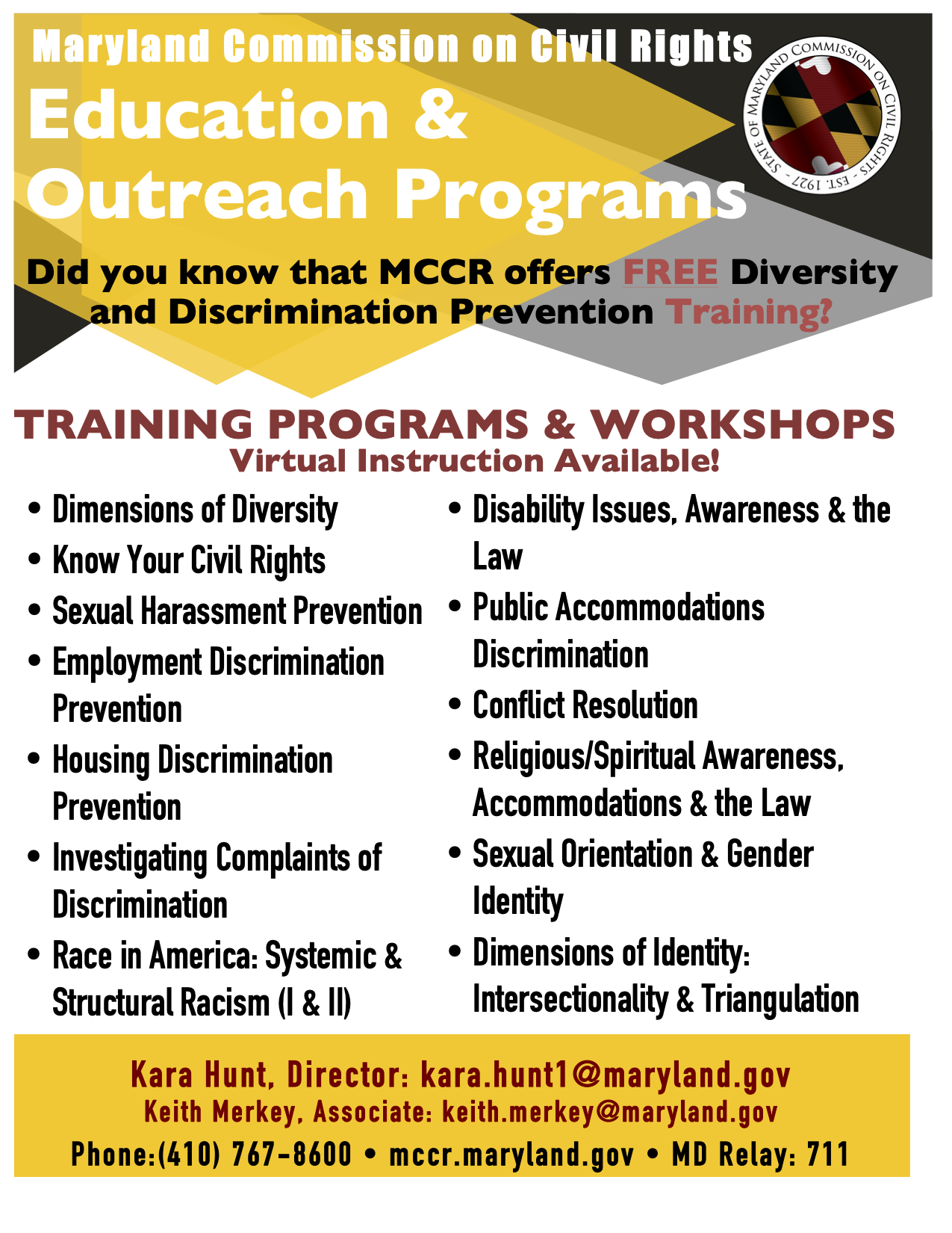 Maryland Commission on Civil Rights FREE Diversity & Discrimination Prevention Training