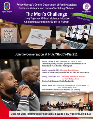 The Department of Family Services is excited to announce the 2021 Winter Edition of the Men’s Challenge — Living Together Without Violence Initiative. If you were not able to attend any of fall sessions, you missed several dynamic and informative presentations.
