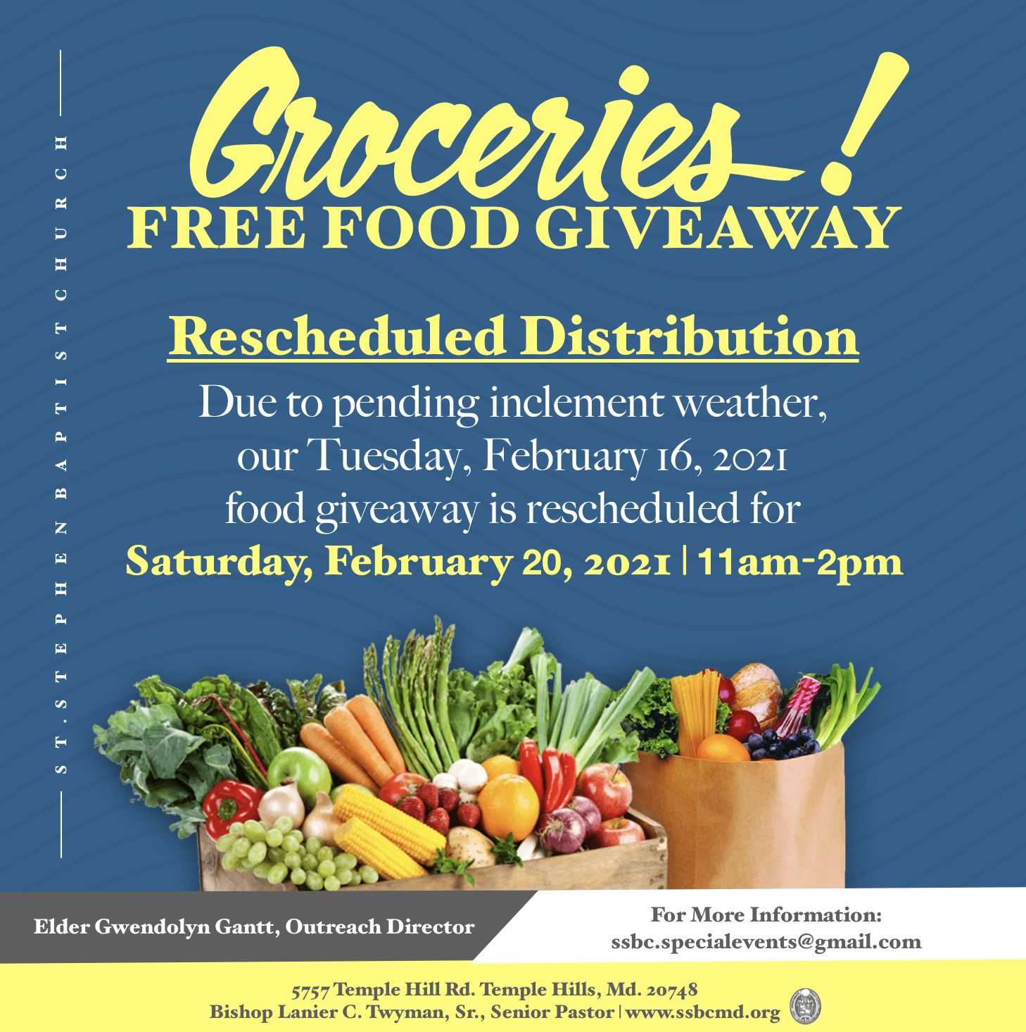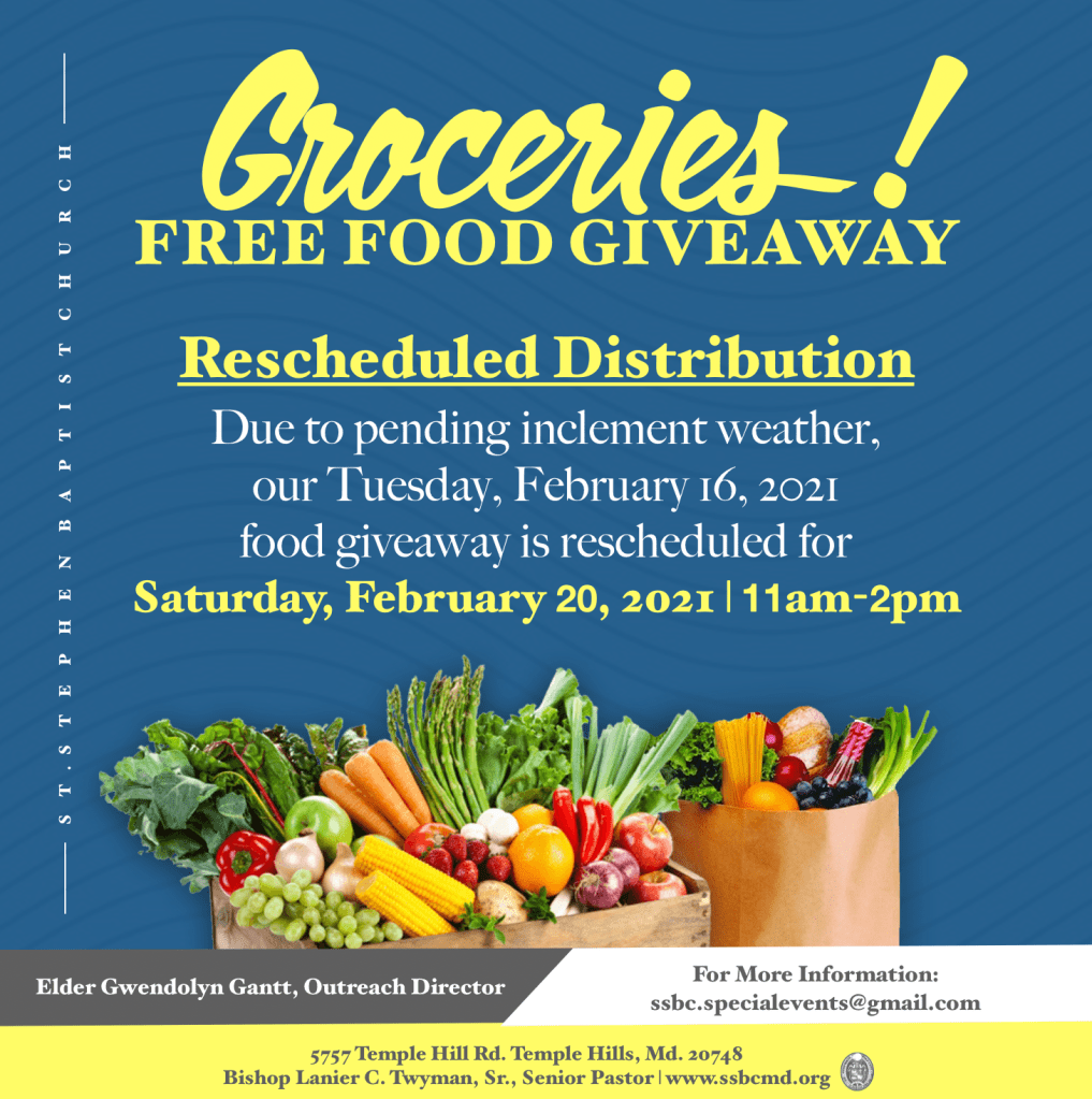 Food Giveaway Rescheduled to February 20th from 11am-2pm