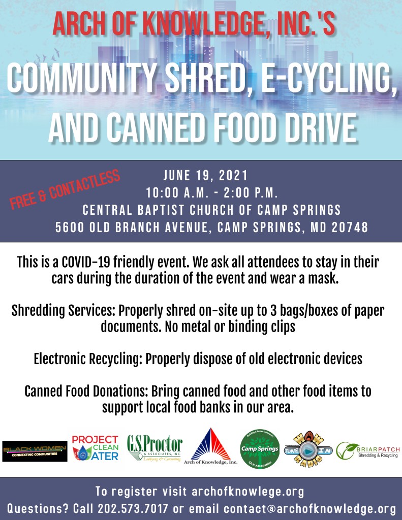 Community Shred, E-Cycling and Canned Food Drive 6-19-21