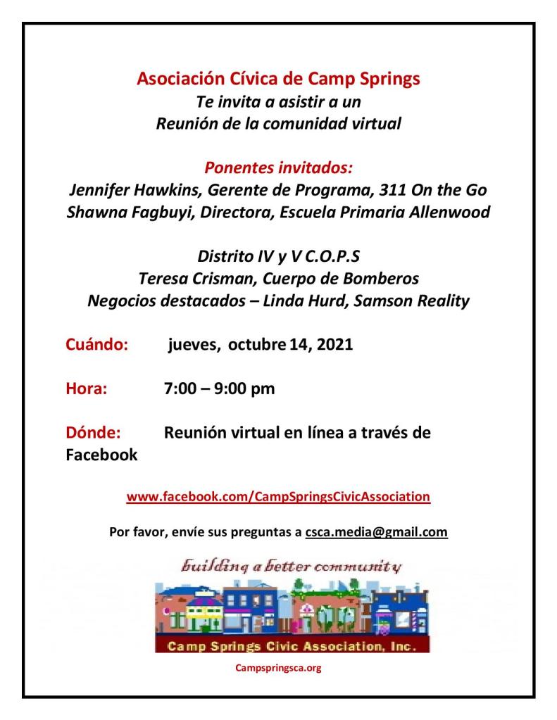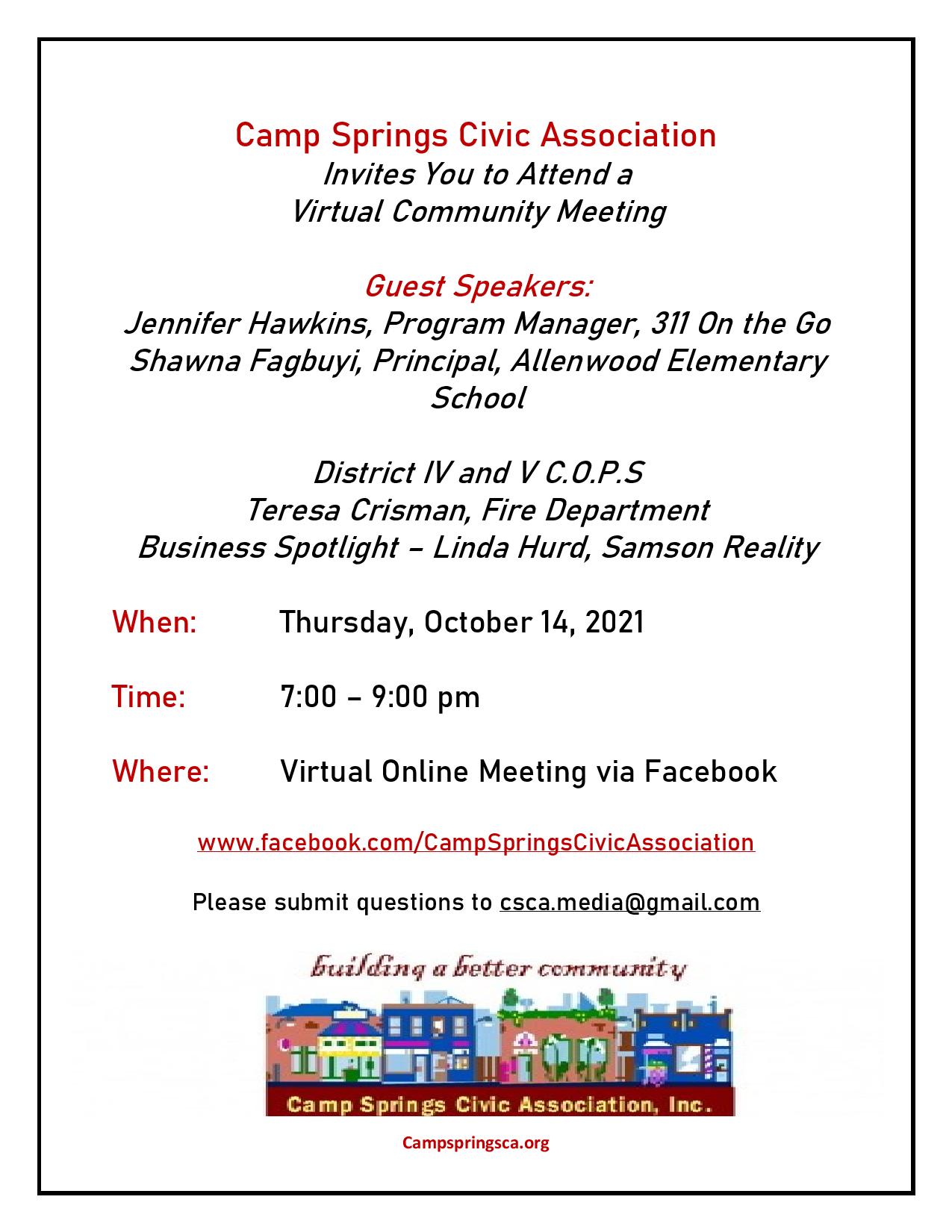 Posted on October 14, 2021 by Camp Springs Civic Association