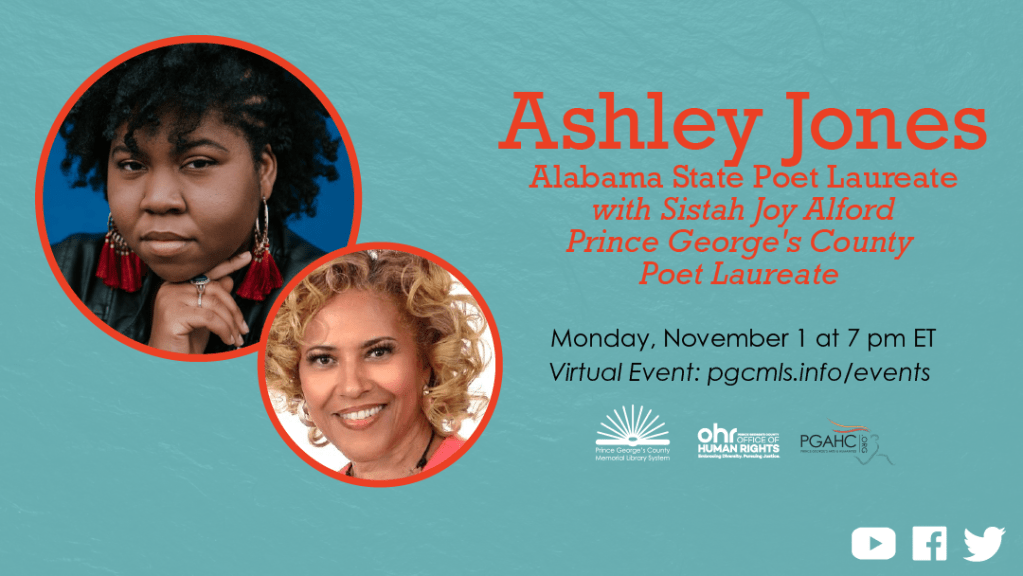 Please join me at 7:00 PM, EDT, Monday, November 1, as I interview Alabama State Poet Laureate, Ashley M. Jones, about her most recent collection of poems, Reparations Now! Through her powerful poetry, this incredible poet speaks eloquently, candidly, and unapologetically about the issues of the day and the history of this country. This virtual interview promises to introduce to many a voice that has captured the attention of poets and poetry enthusiasts nationally and internationally. Listen and post your comments and questions in the chat during this virtual interview. We welcome you to be part of the conversation
