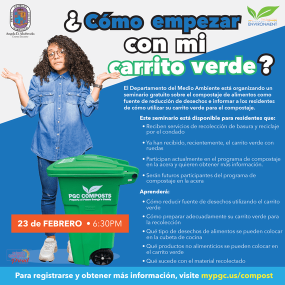 El Departamento del Medio Ambiente auspiciará un seminario GRATUITO: ¿Cómo Empezar con mi Carrito Verde? El jueves 23 de febrero, a las 6:30 p.m. explicando cómo utilizar apropiadamente su carrito verde.
