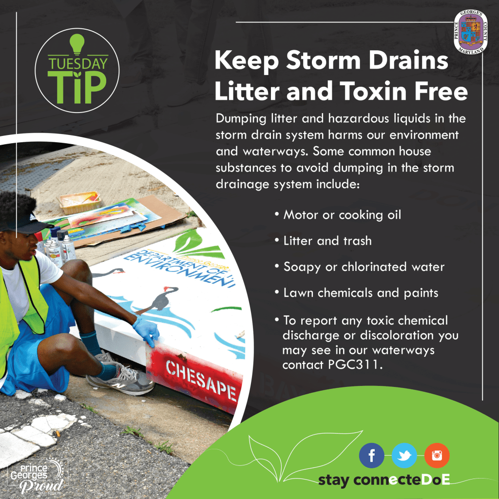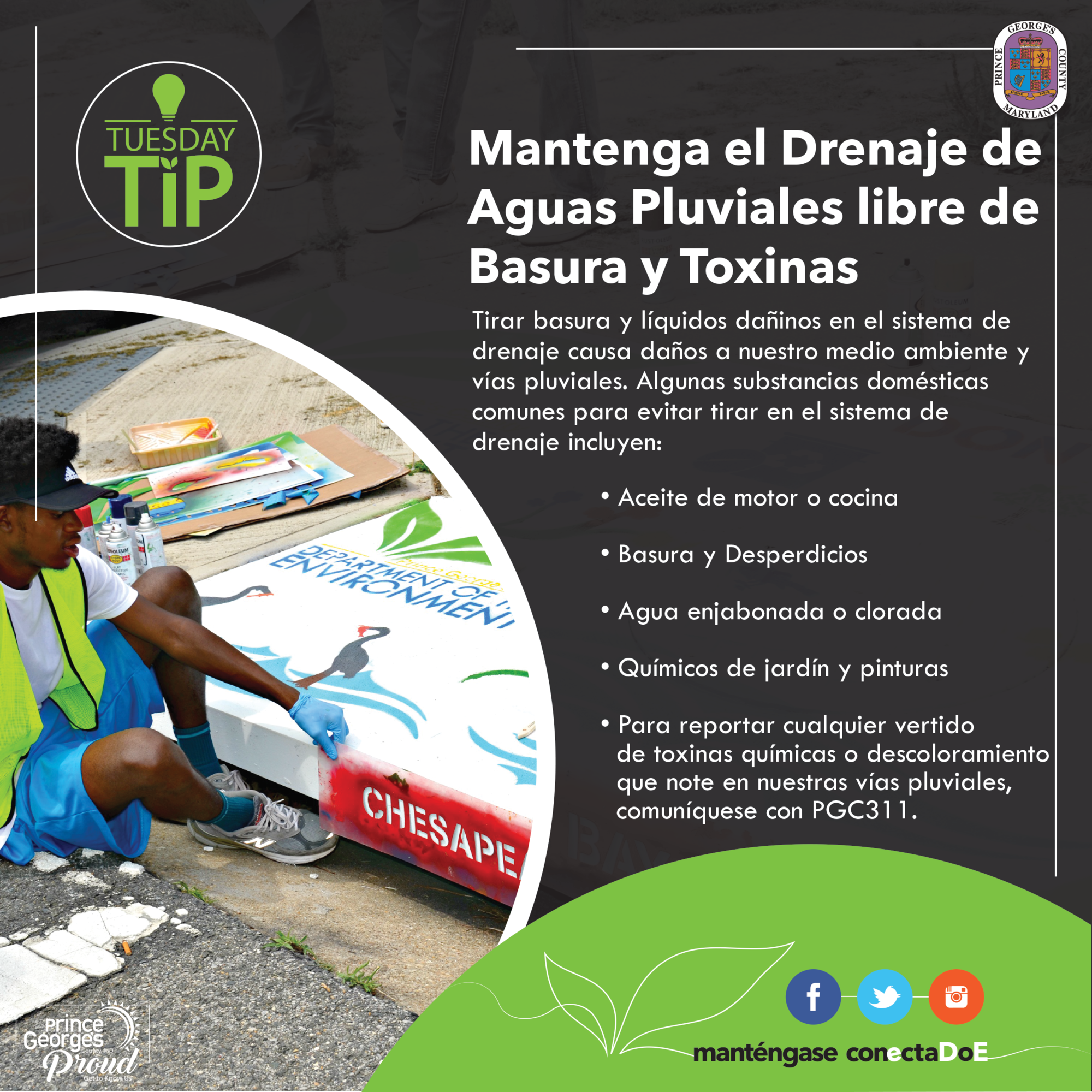 Keep Storm Drains Litter and Toxin Free / Mantenga el Drenaje de Aguas Pluviales libre de Basura y Toxinas