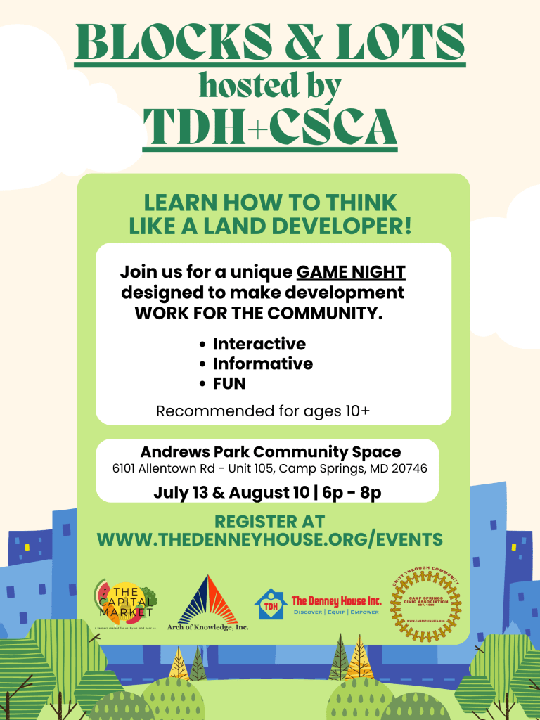 Come out to play Blocks and Lots to understand the development process that affects the community. Join us, spaces are limited.