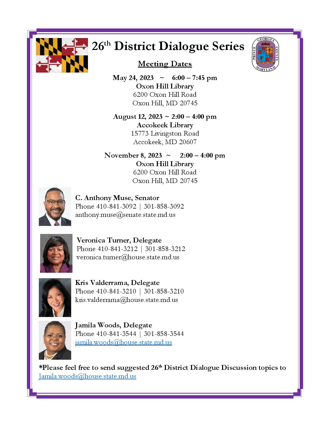 Upcoming 26th District Dialogue Series