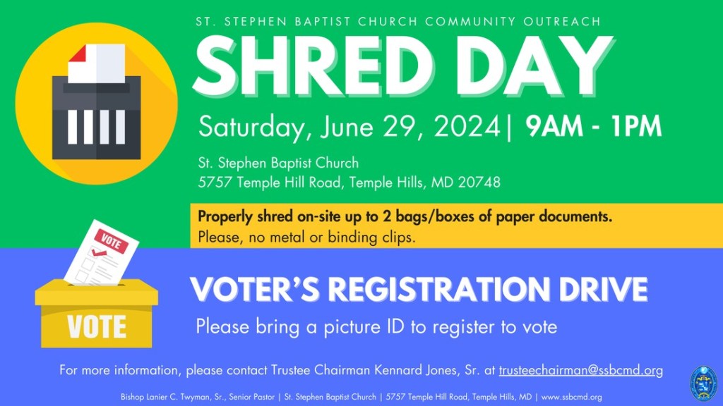 Shred Day – June 29th @ 9am – 1pm St. Stephen Baptist Church