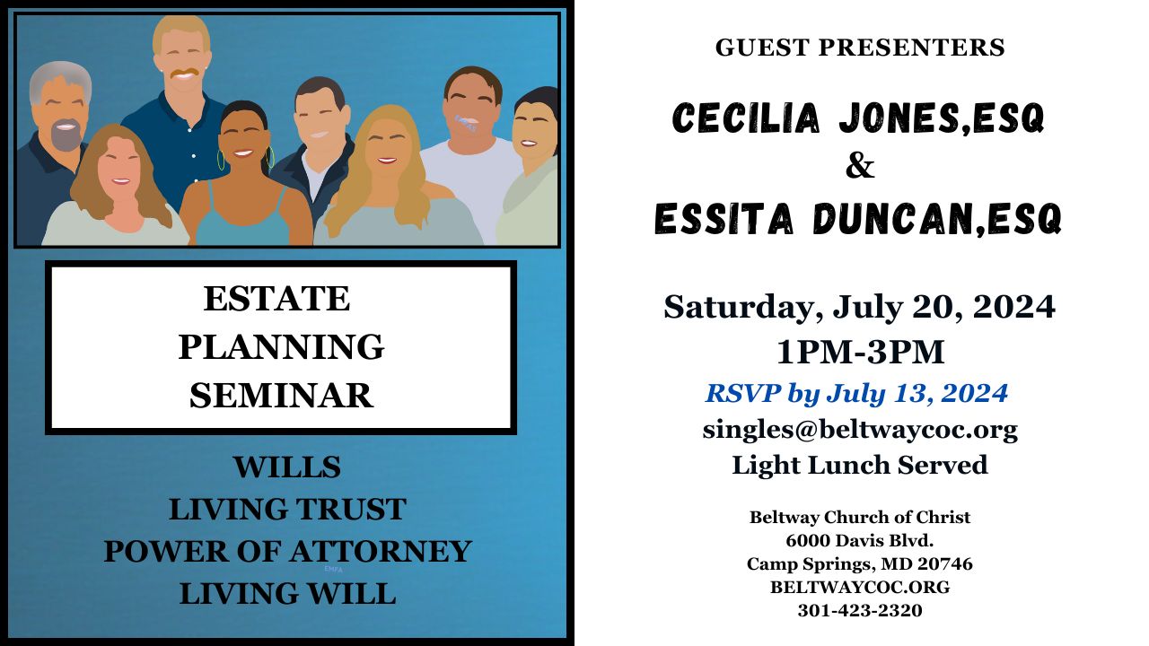 Beltway Church of Christ Estate Planning Seminar July 20