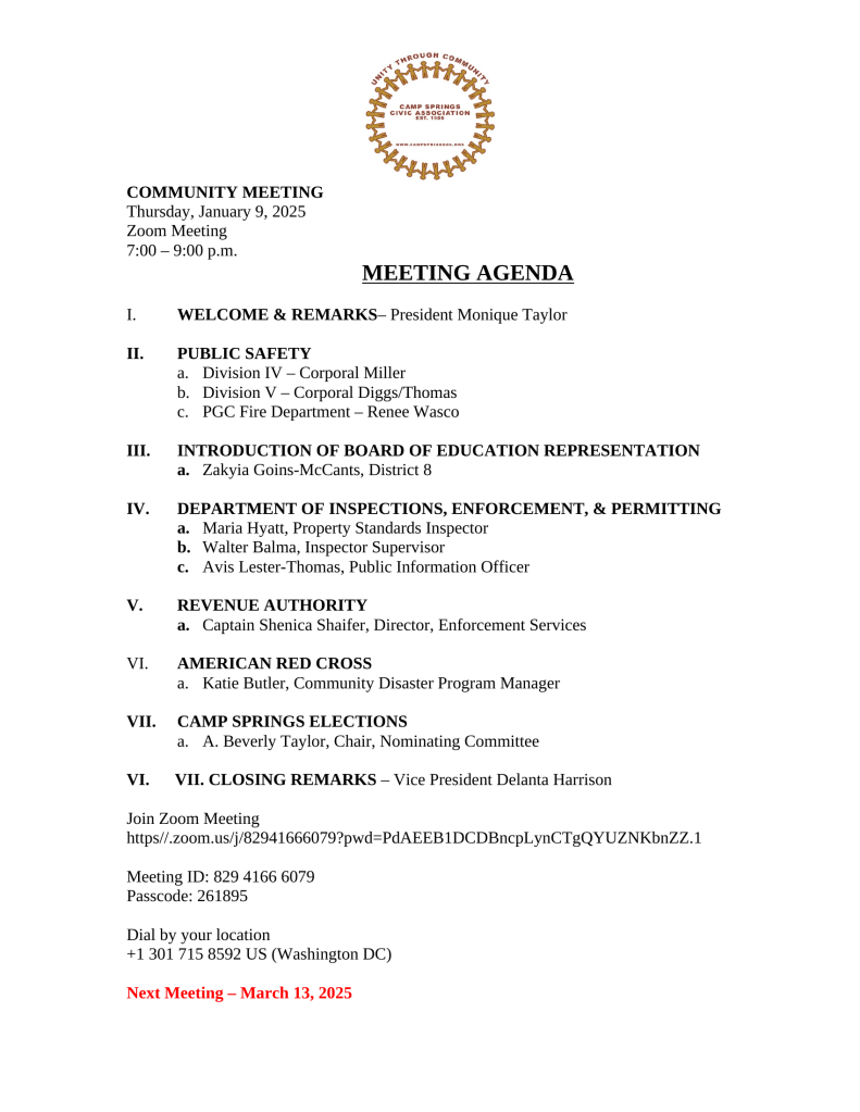 Join us for an exciting agenda with government officials and the American Red Cross. Please share this with your neighbors. Zoom link and agenda below!