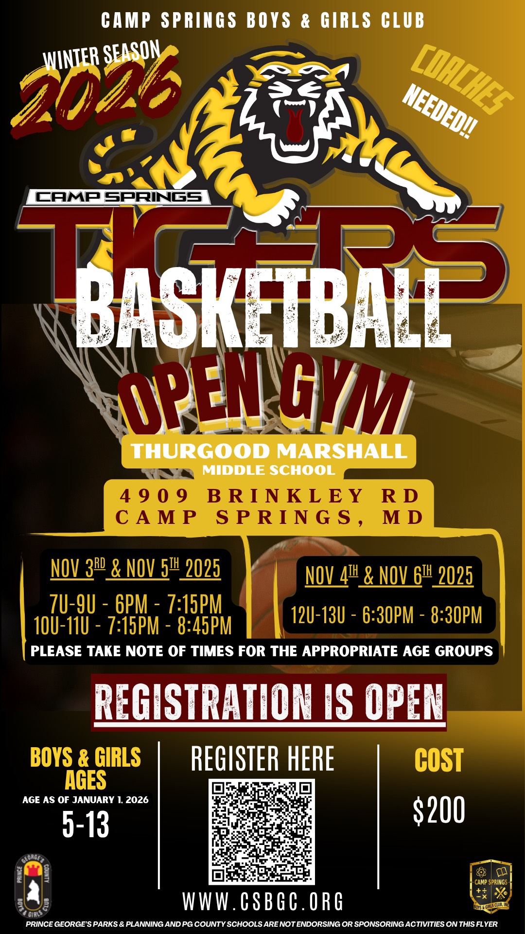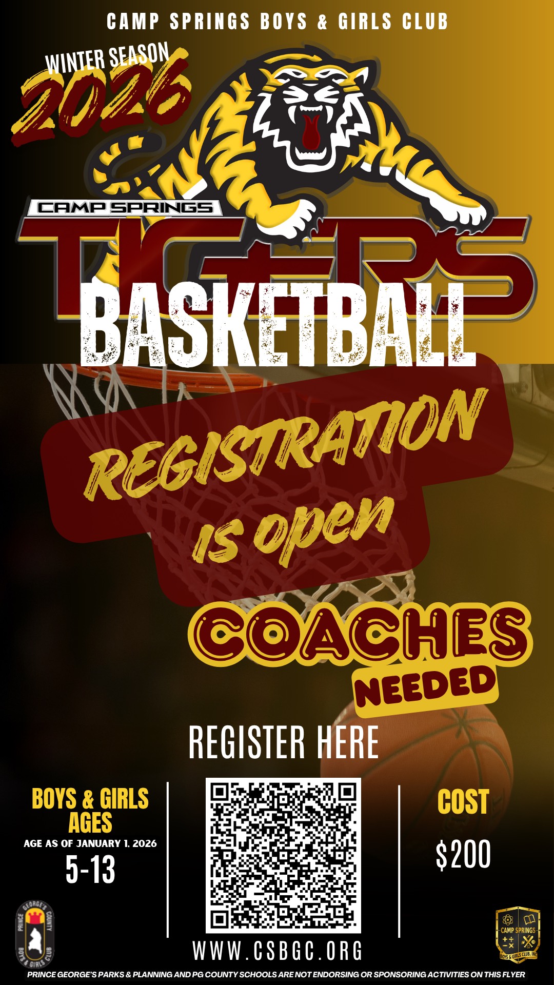 The Camp Springs Boys & Girls Club is seeking coaches and young athletes for upcoming basketball teams!