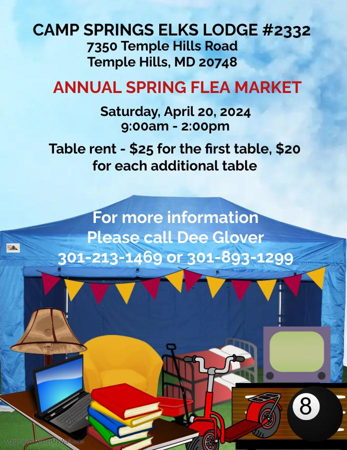 Camp Springs Elks Lodge Annual Spring Flea Market – Saturday, April 20